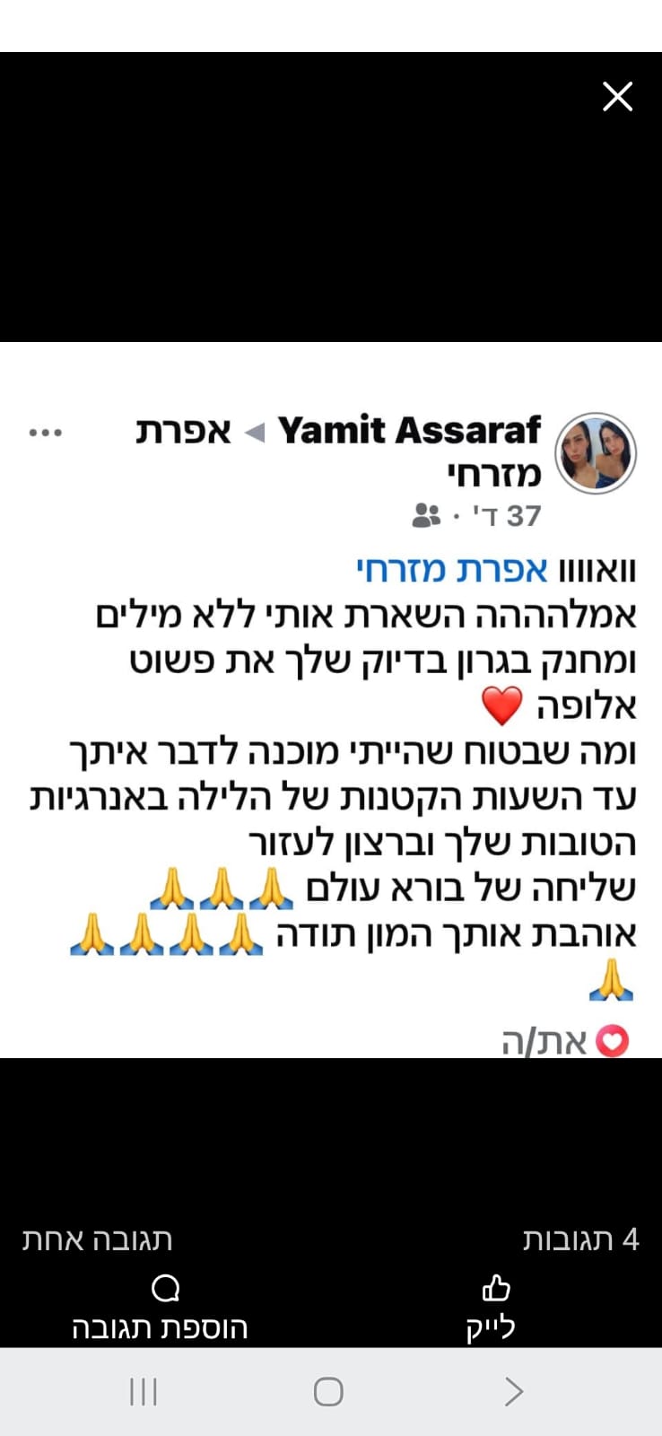 העבודה שלי נעשית ביראת שמיים ובדיוק רוחני גבוה – עם כלים עתיקים, אמונה עמוקה, ותמיד באור.